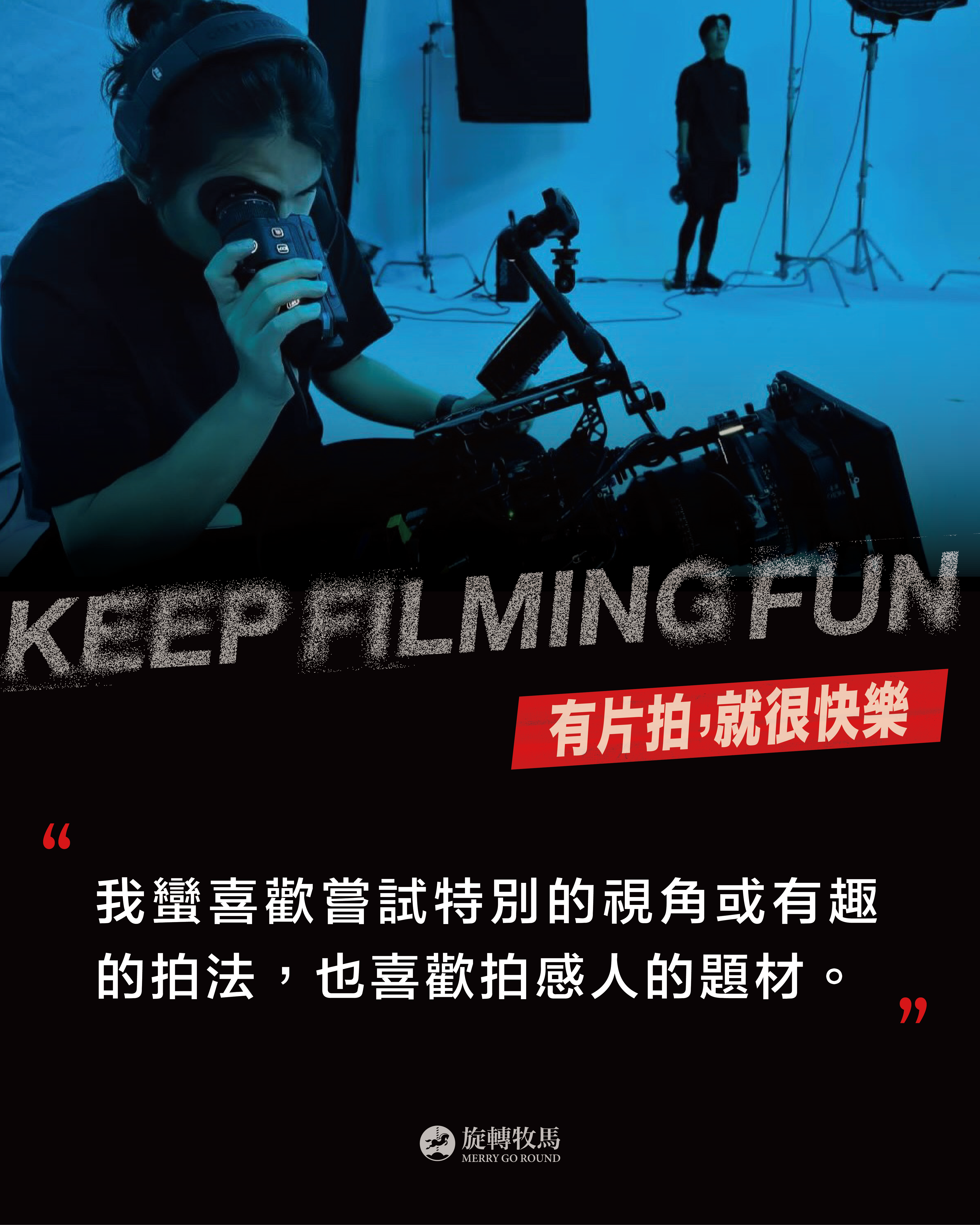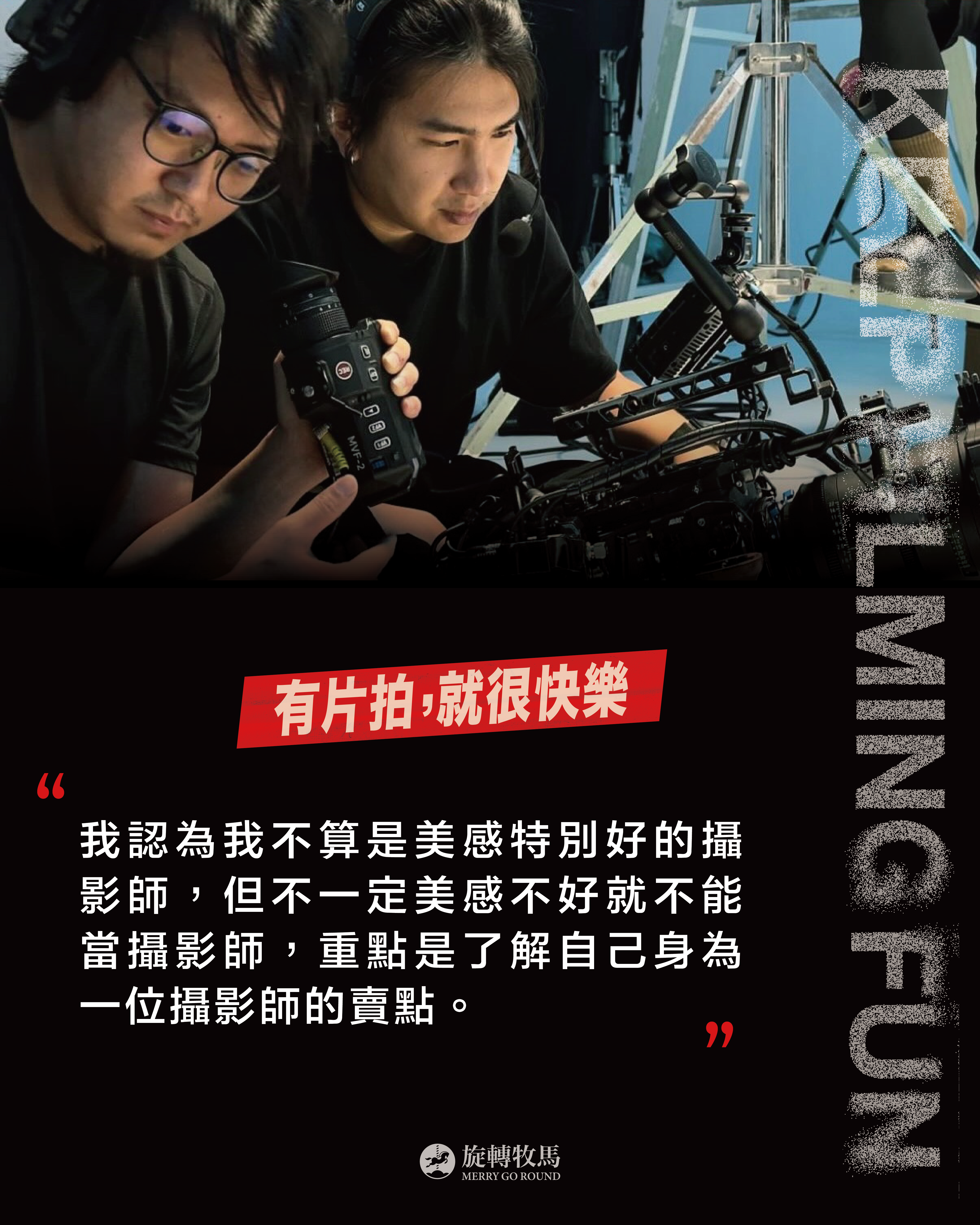 他喜歡嘗試特別的視角與拍法,看到有趣的 reference 就會想辦法試出來,就算土炮也要拍到想要的效果。這種執行力與實驗精神,讓他在創作中找到自己的節奏。