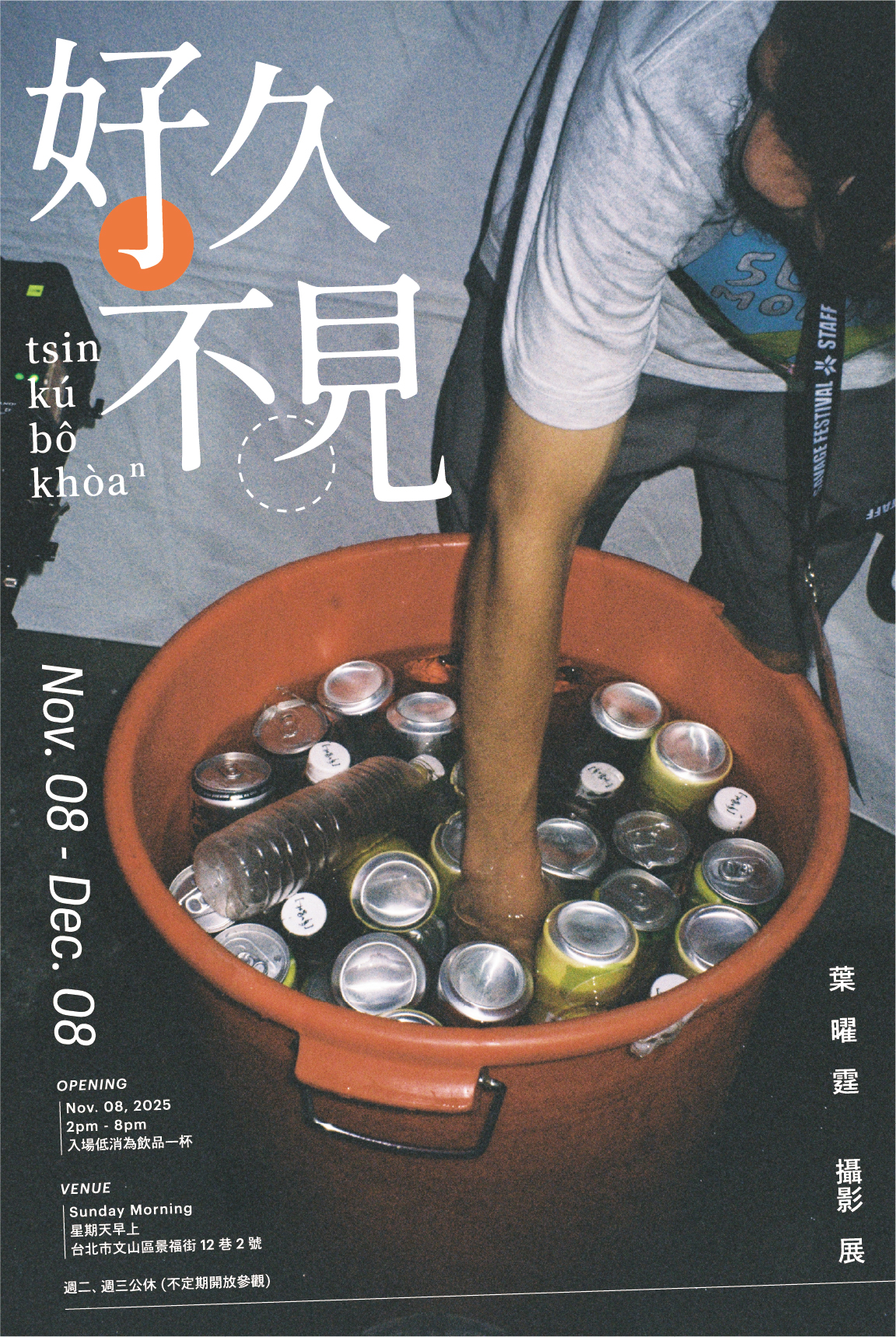活躍於台灣獨立樂團圈的新生代攝影師葉曜霆(Oz)將於 2025 年 11 月 8 日(六)至 12 月 8 日(一)在 Sunday Morning 星期天早上舉辦個人首次攝影展——《好久不見》。展覽以他擔任樂團「非人物種」隨團攝影師三年間所累積的影像作品中精選,將台上與���常的情感琢磨成一句「好久不見」。